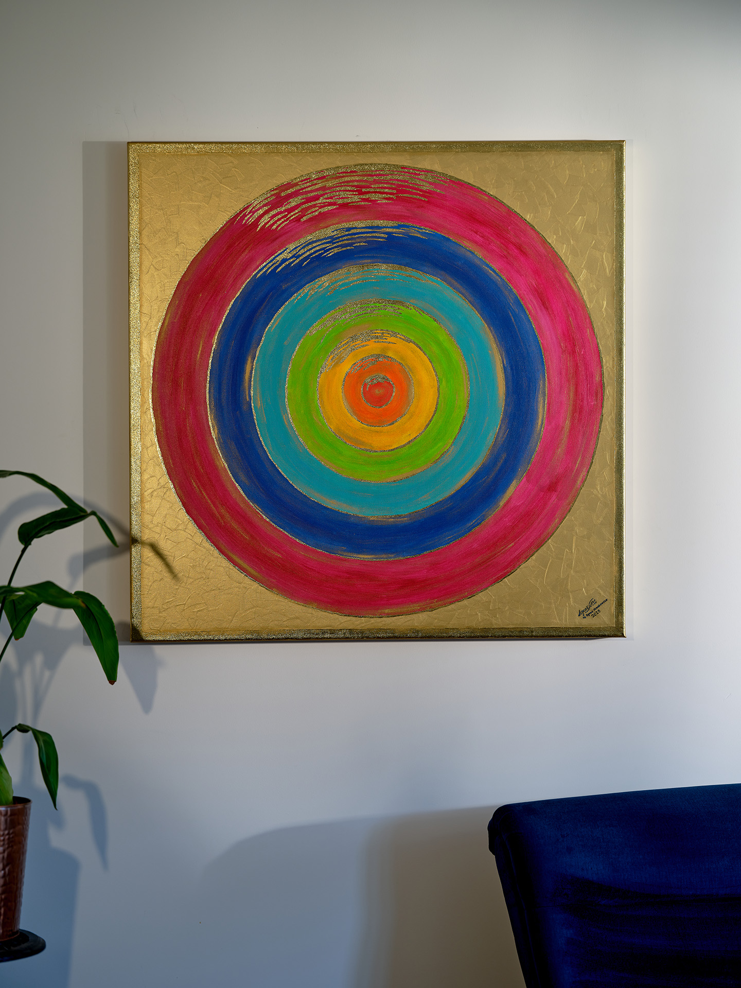 Obraz przypomina tarczę, przedstawia 7 głównych czakr, które umieszczone są w postaci okręgów na złotym tle. Zaczynając od środka okręgu znajduje się: Czakra korzenia ( czerwień), czakra sakralna ( pomarańcz), czakra splotu słonecznego ( żółty), czakra serca ( zieleń), czakra gardła (niebieski), czakra trzeciego oka (indygo), czakra korony (fiolet wpadający w fuksję).