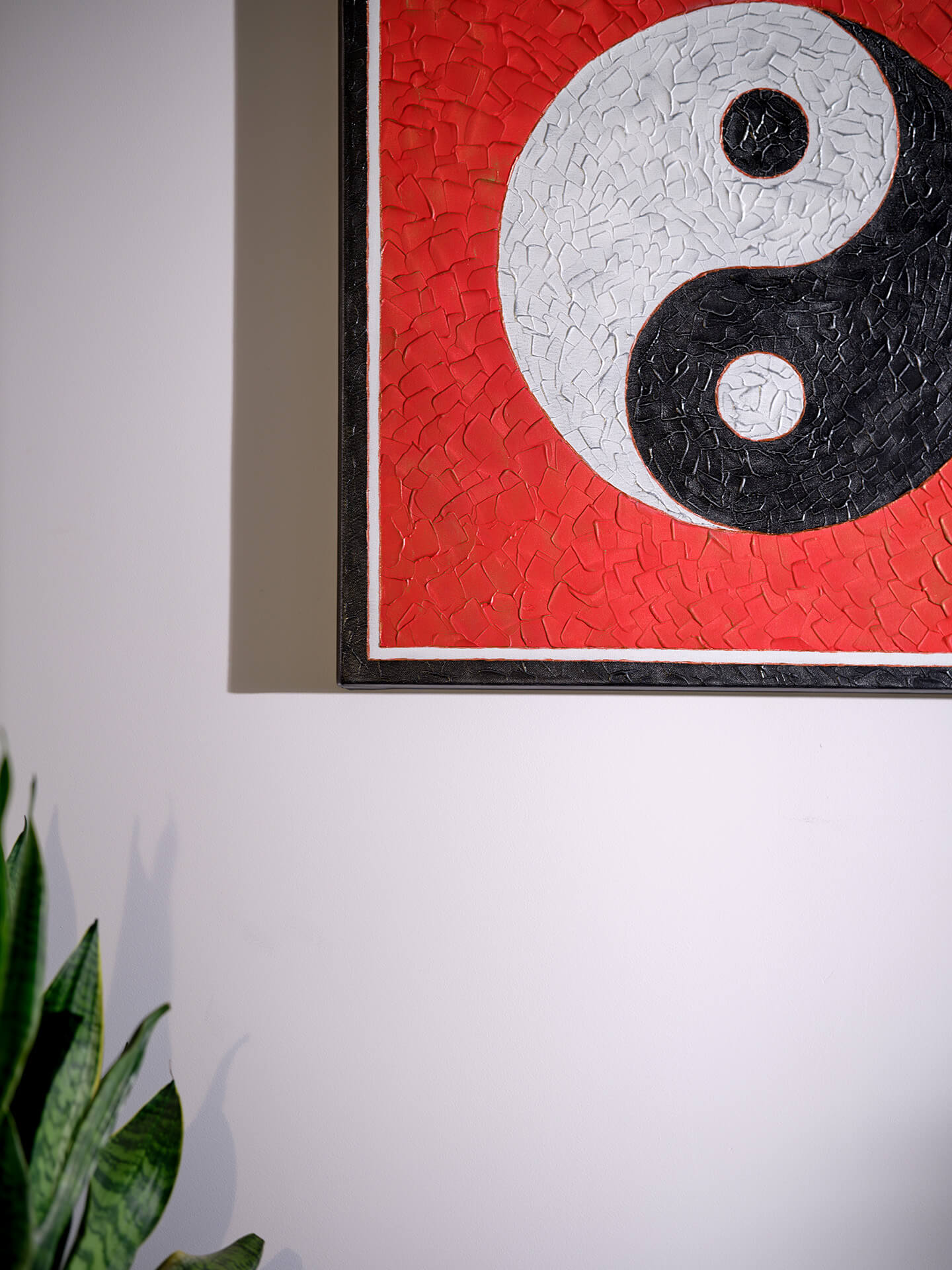 Koncepcja yin-yang odgrywa istotną rolę w Tradycyjnej Medycynie Chińskiej, która dąży do osiągnięcia i utrzymania równowagi między tymi siłami dla zachowania zdrowia i dobrego samopoczucia. Jest również obecna w filozofii taoistycznej, sztukach walki i praktykach medytacyjnych. Symbol wprowadza do pomieszczenia równowagę i spokój, będzie idealnie prezentował się w gabinecie, sypialni czy salonie. Idealny prezent na różne okazje.